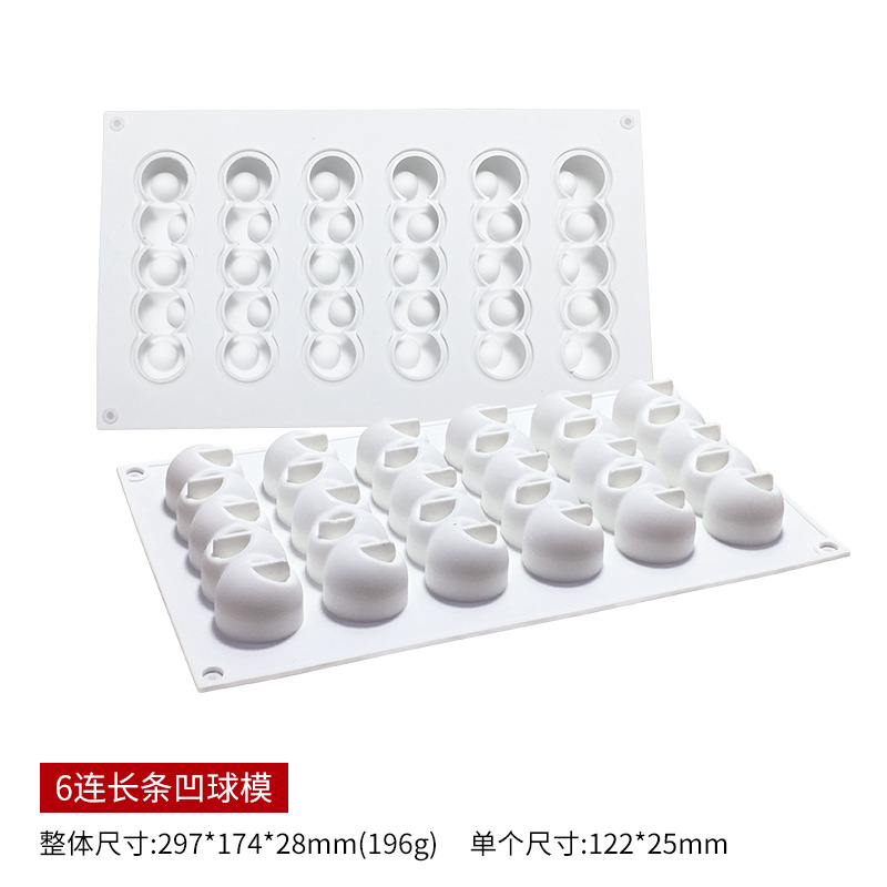 Concave ball long strip silicone mold baking 6 French pastry dessert ice cream mousse cake tool