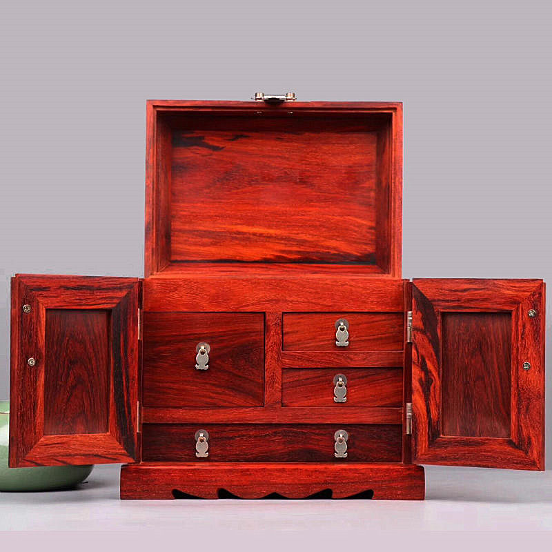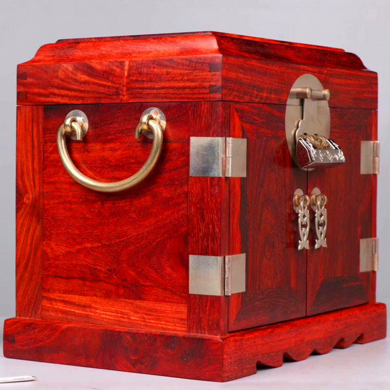 Indian Small Leaf Purple Sandalwood Official Leather Case Red Wood First Decorated Box Containing Box Chinese Jewelry Box With Lock Engaged Wedding Dowry