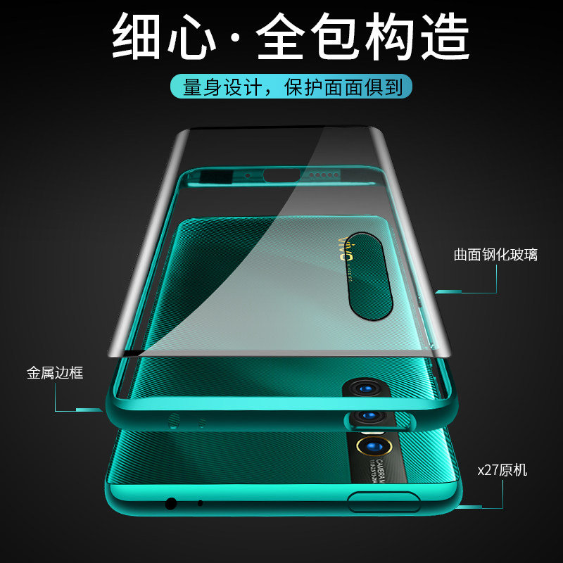 (Hot curved surface) vivox27 mobile phone protective case metal transparent glass x27 Pro all-inclusive anti-fall vovix frame thin ⅴivox net red female viovx protective sleeve v