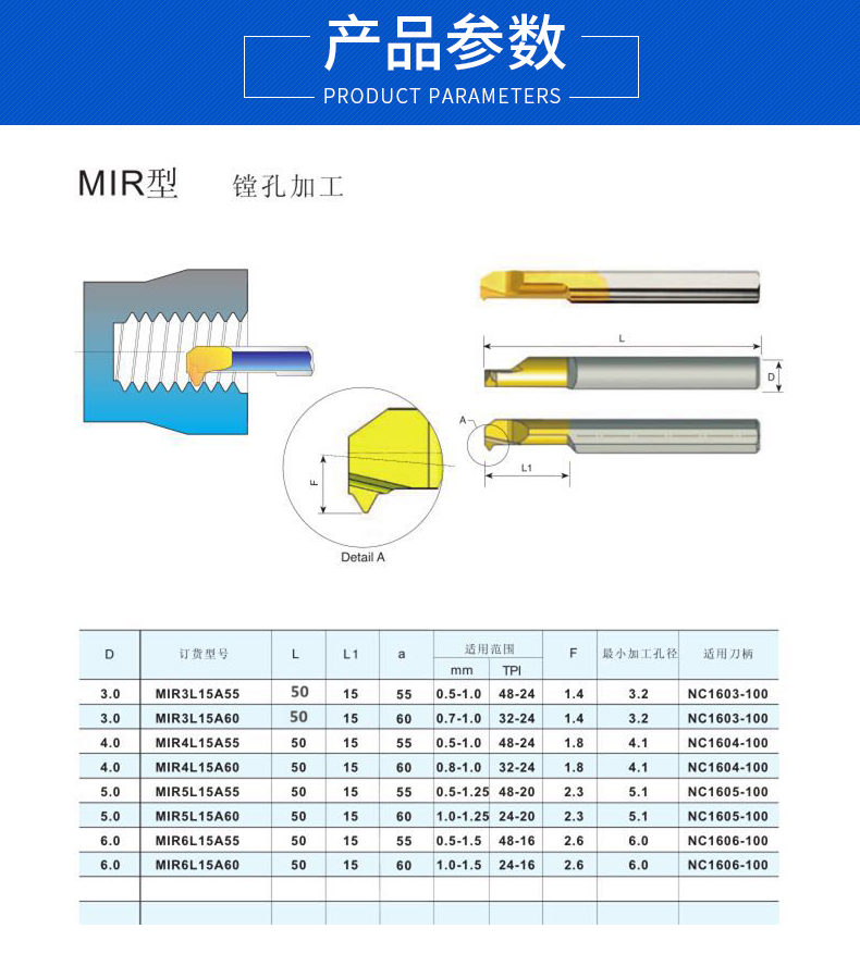 Tungsten steel boring cutter MIR type tiny diameter boring cutter machining center inner hole knife pore diameter thread boring cutter 3 4 5 6