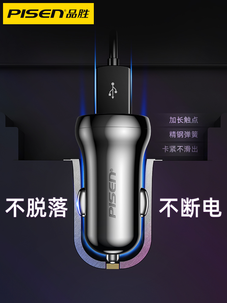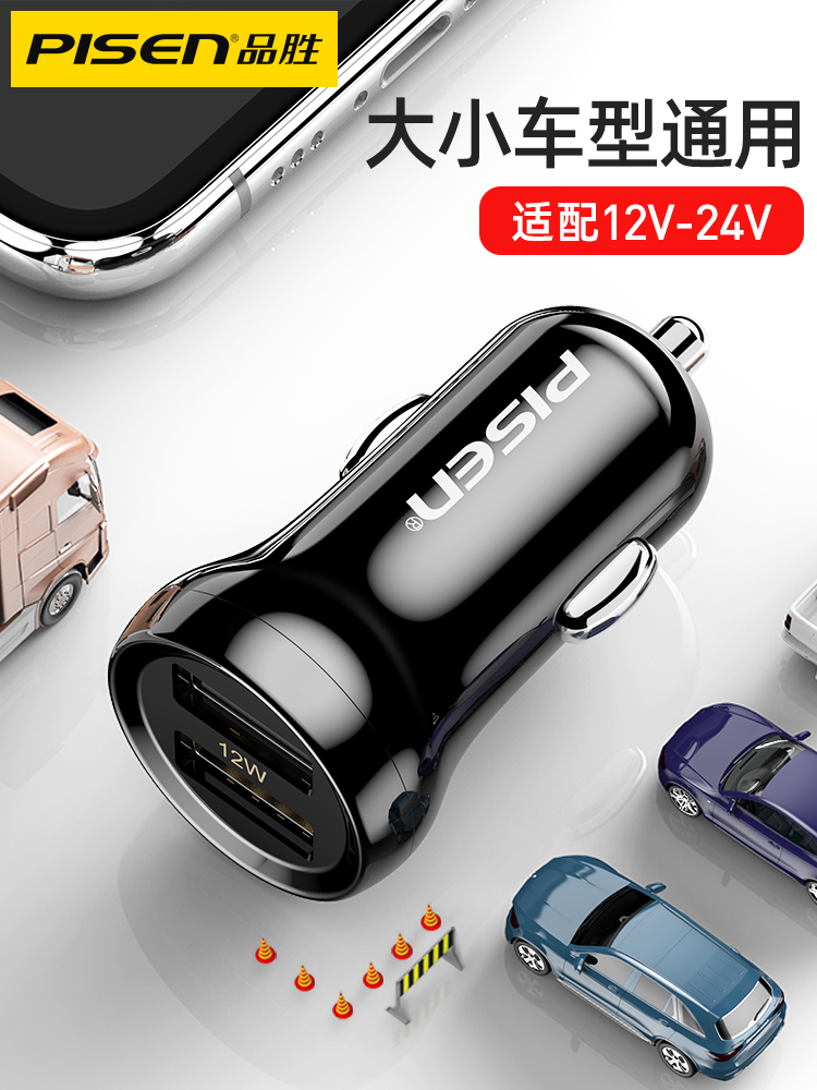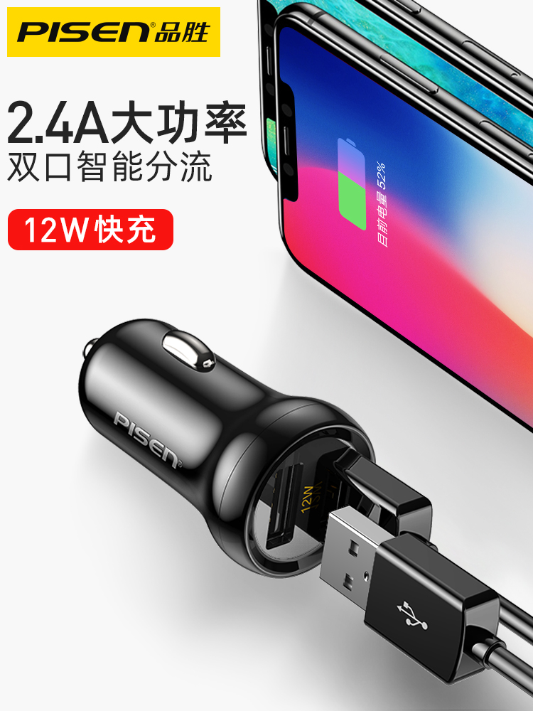 Pinsheng car charger fast charging flash charging one tow two cars with millet car charger car cigarette lighter conversion plug multi-functional 24v truck charging is suitable for Apple mobile phone dual USB interface