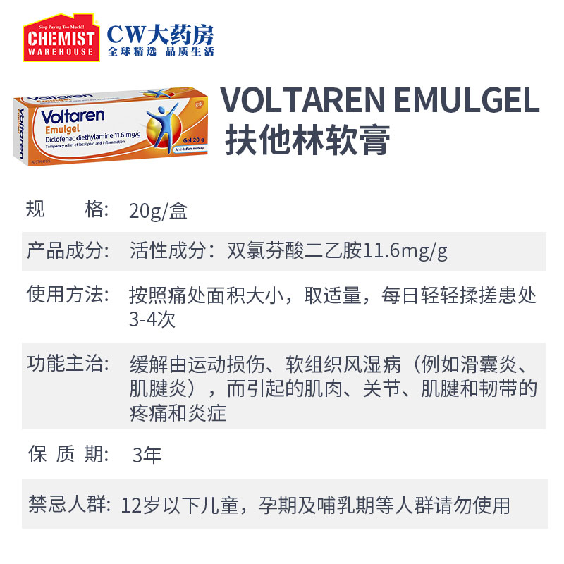 Voltaren helps Talin cream muscle joint massage disinfectant latex agent CW Australian gel imported OTC