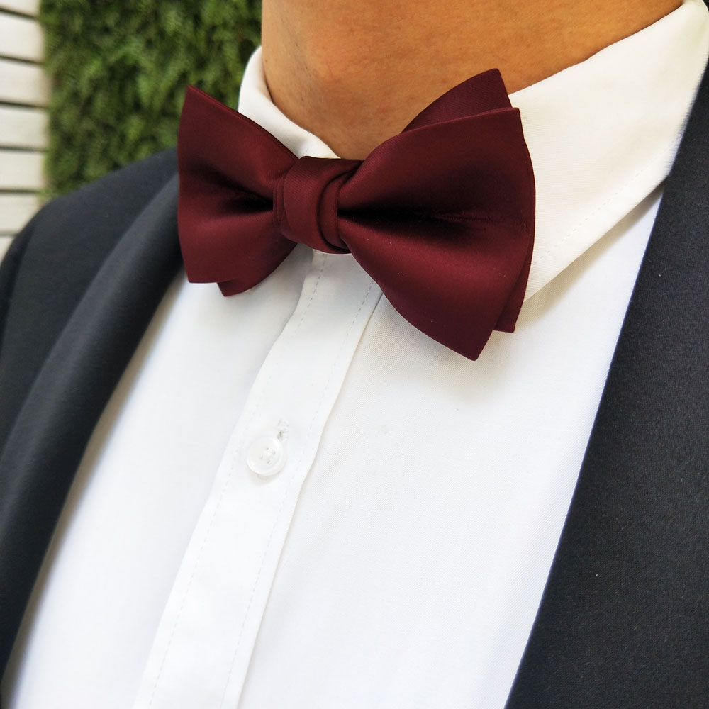 Hyde Park bow tie Groom wedding dark burgundy solid color fashion trend suit men's high-end bow
