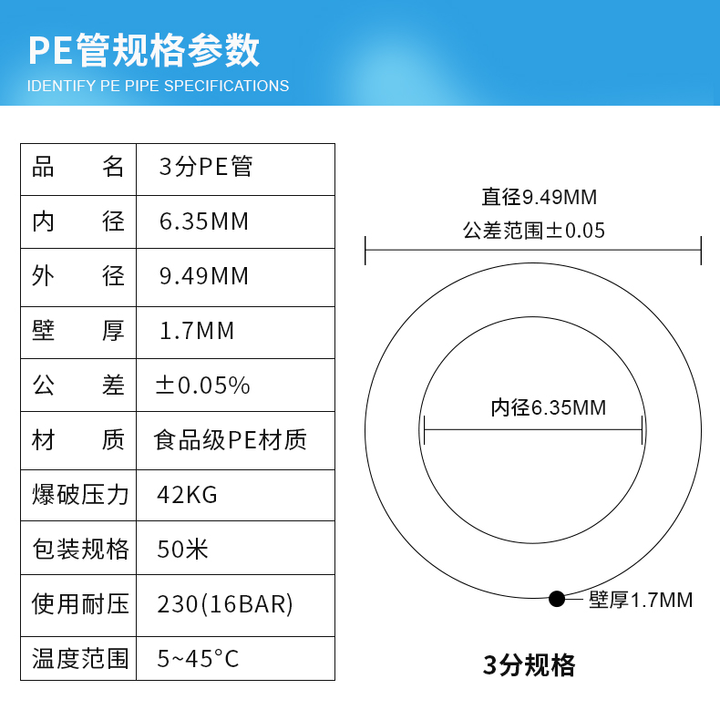 Water purifier 2 min PE household general 3 pipe direct water water machine RO hose hose joint accessories