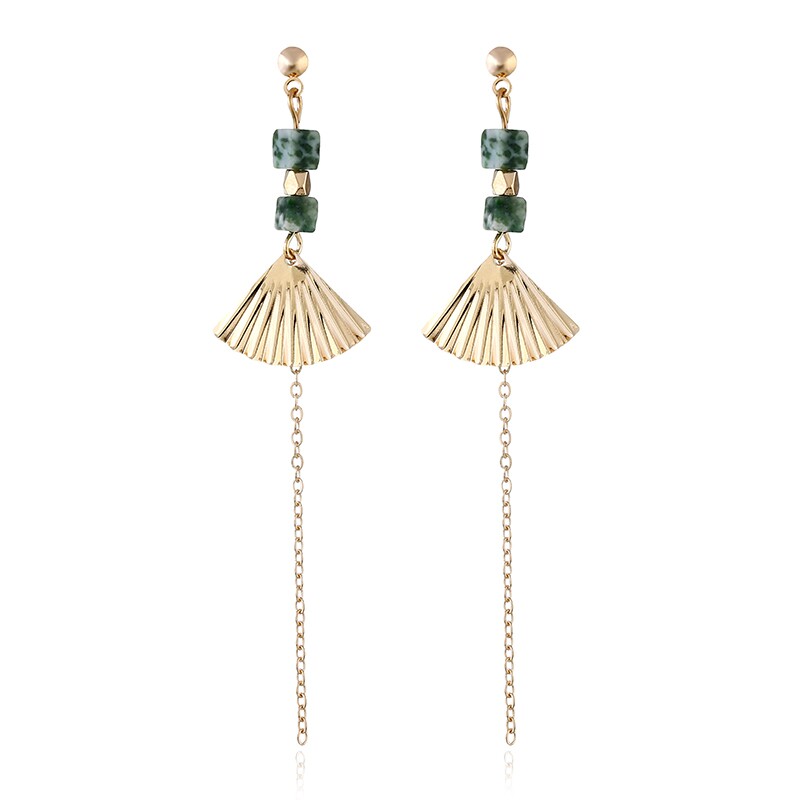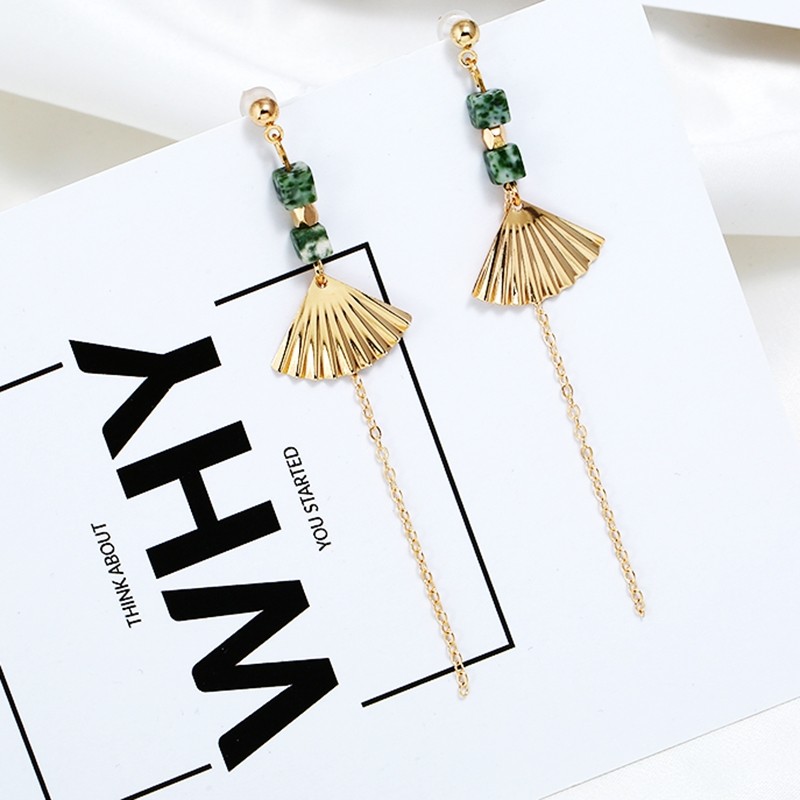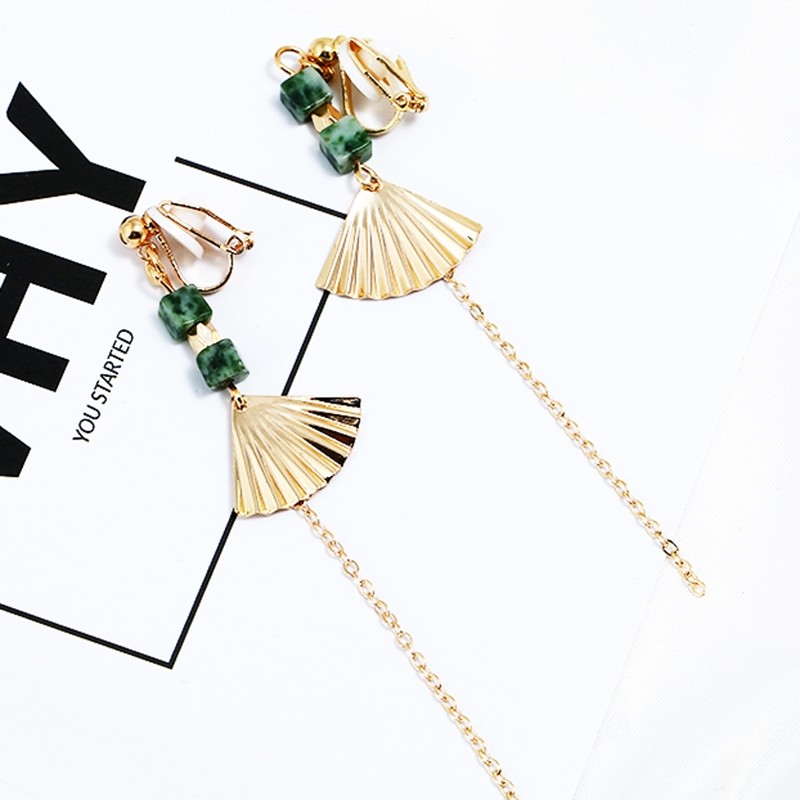 Y9 good fairy fan-shaped long version of tassel handmade classical earrings without ear pierced ear pins Elegant retro wind ear clip Japan and South Korea