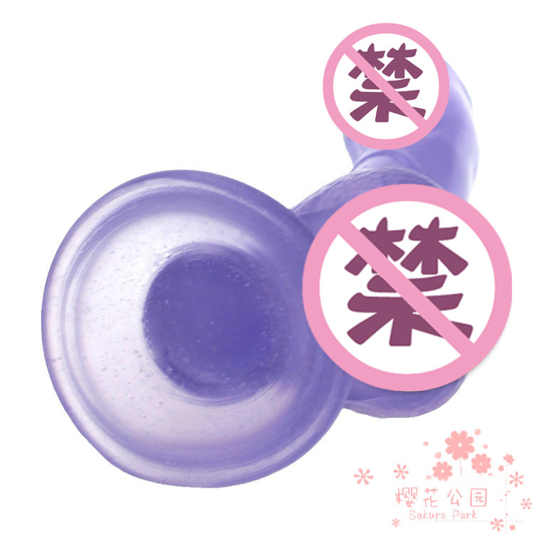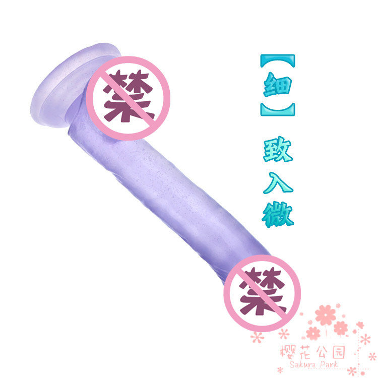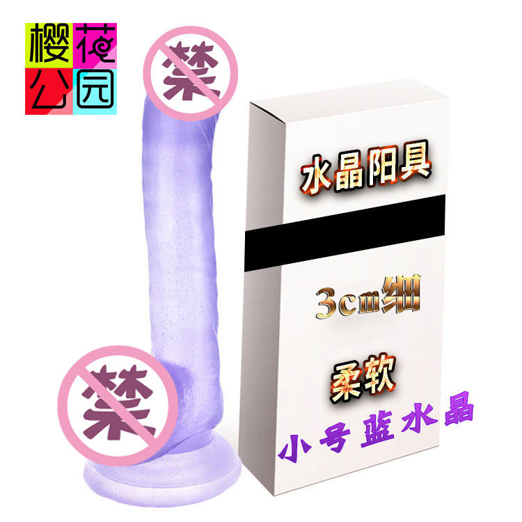 Female with small number of soft blue crystal slender masculine 3cm manually drawn and inserted mini transparent simulation fake man penis
