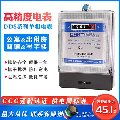 Chint single-phase electric energy meter DDS666 household electronic high-precision electric-hour meter rental room fire meter 220V 40A