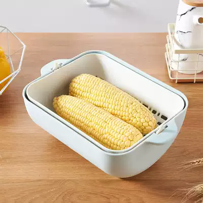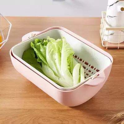 Double layer washing basket Drain basket washing fruit vegetable washing artifact kitchen creative household fruit plate rotating rice washing basket Milo