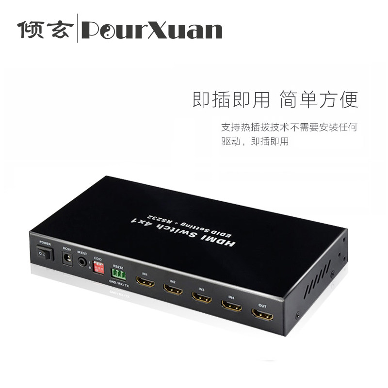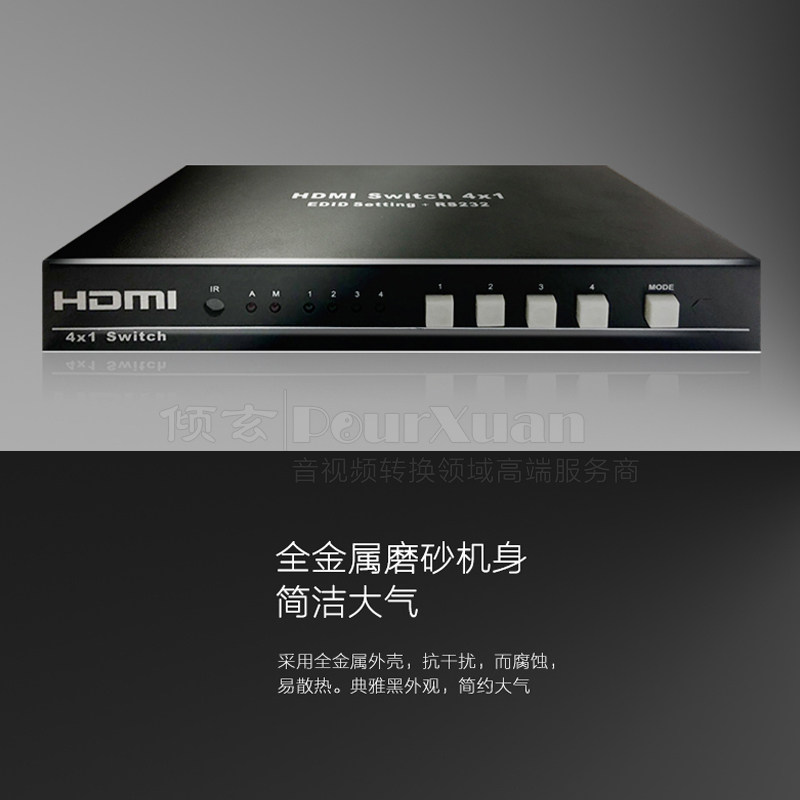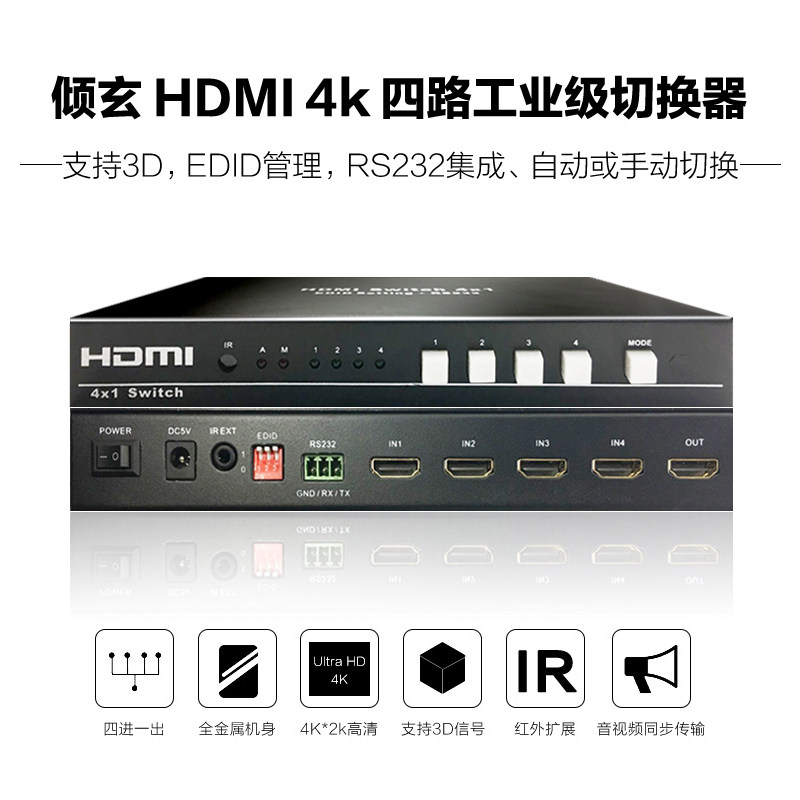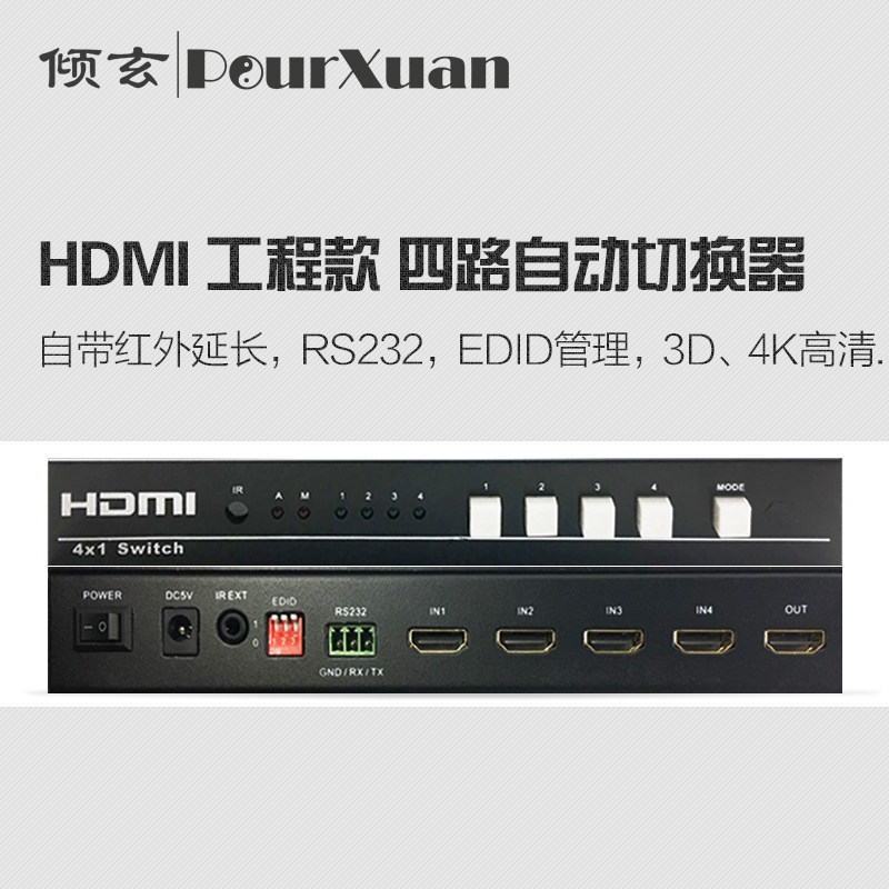 HDMI automatic switcher industrial-grade serial port debugging four-in-one-out with remote control switching 4-port audio and video synchronization
