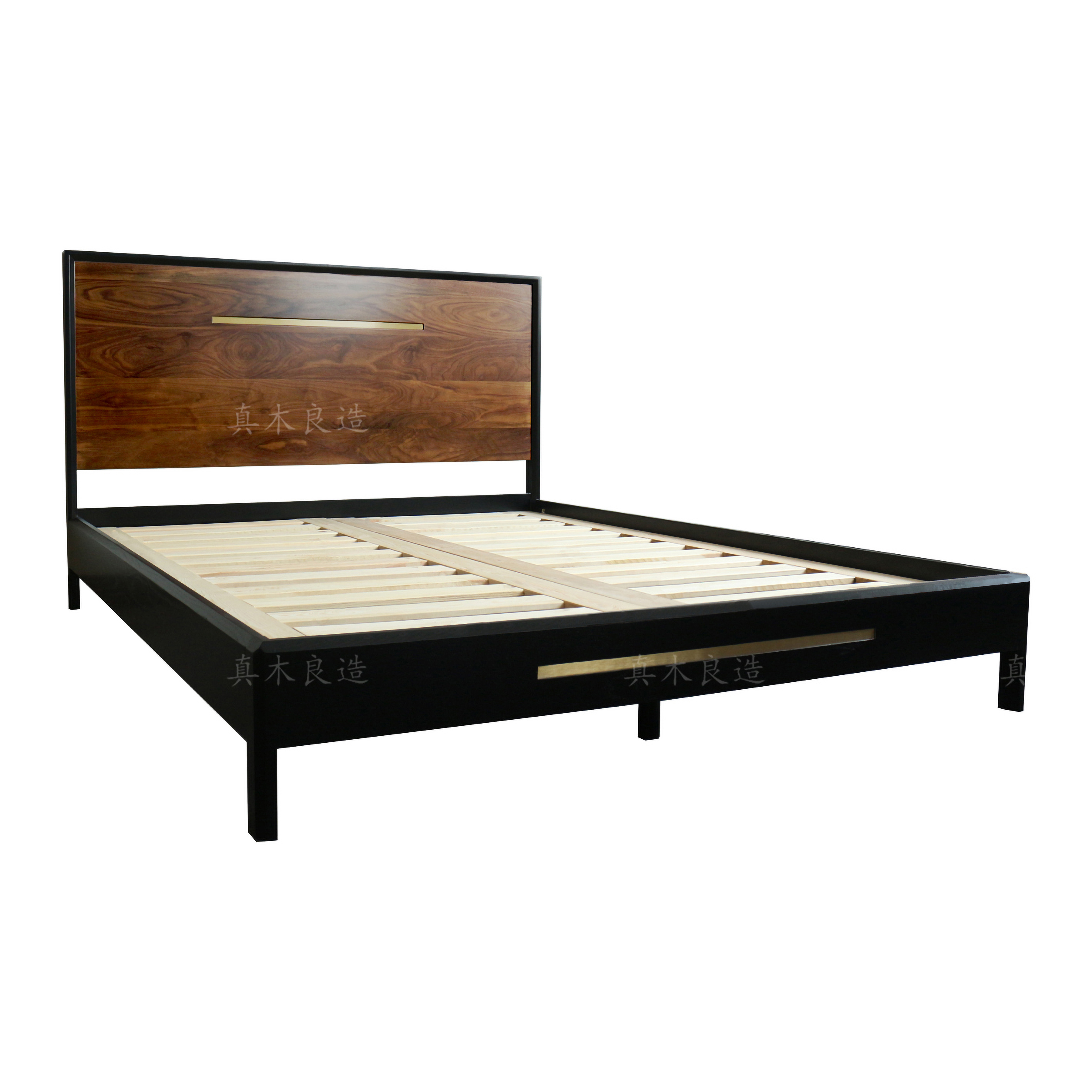 Real wood made Nordic solid wood bed cherry wood walnut bed row skeleton bedroom double bed 1 5 meters 1 8 meters