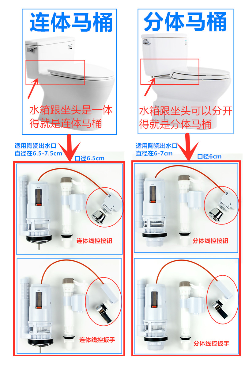 Vintage toilet modification siamese split pumping toilet tank accessories wrench double press wire control water parts complete set