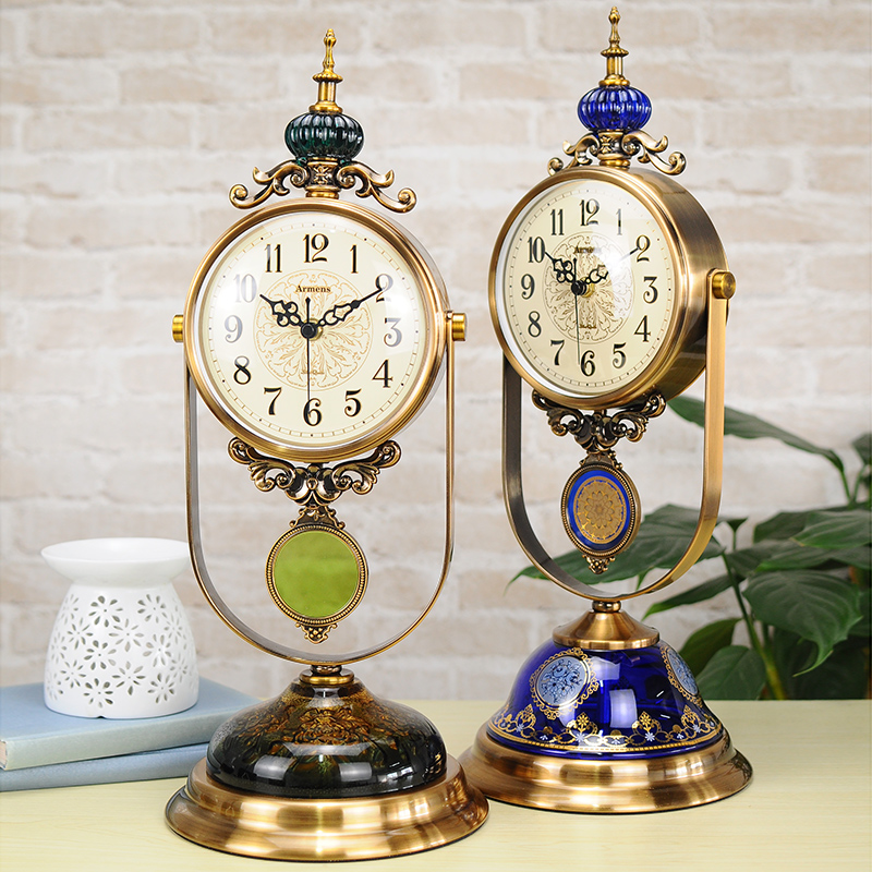 American light luxury metal living room grandfather clock retro home desktop ornament clock European atmosphere desktop personality pendulum clock