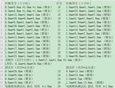 Module power supply pin pin Introducer needle gold-plated 0 8mm * 20 0mm * 1mm to about 2mm * 3mm mm 100 only the package