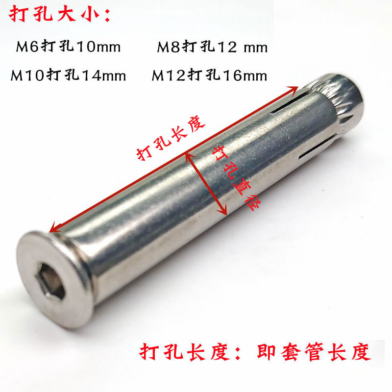 201 stainless steel countersunk head inner hexagonal expansion screw flat head built-in fluffy screw burst pole m6m8m10M12