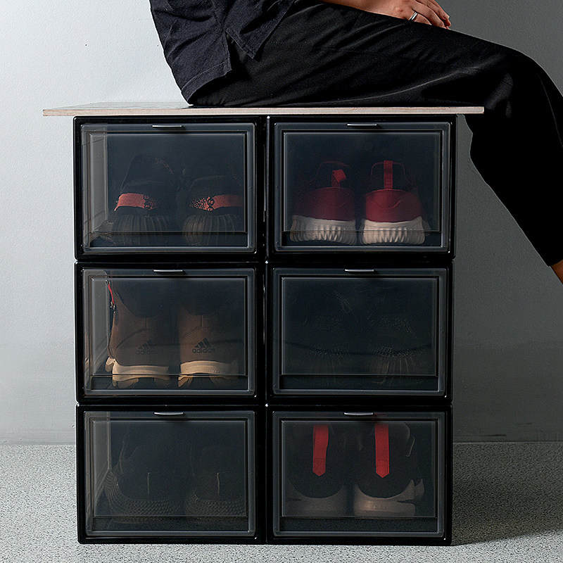 Thickened plastic transparent drawer shoe box men's and women's high-tube shoe storage box high-end dust-proof free combination shoe rack