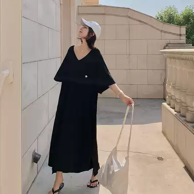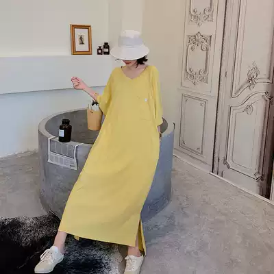Summer new Korean version plus hypertrophy size maternity clothes loose long version of the dress 200 kg over-the-knee pregnant mother long skirt