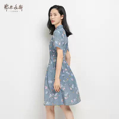 Ordos 1980 Women's summer Mulberry Silk waist Floral Dress Sweet Shirt skirt C295I2022