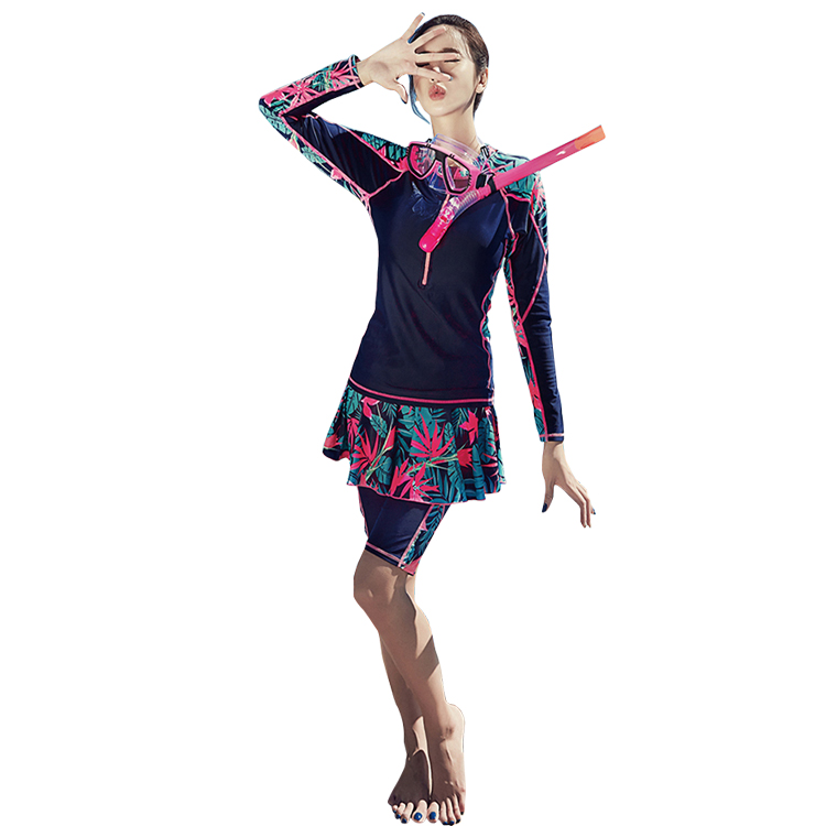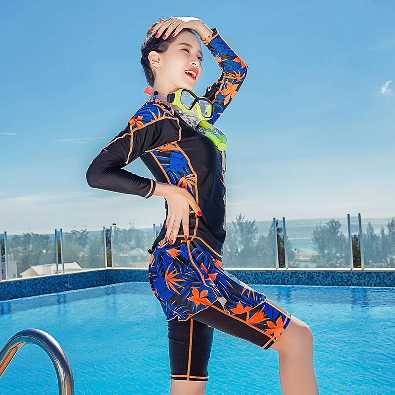 2021 Diving Suit Large Size size Long sleeves sunscreen swimsuit woman Slim Two-piece Flat Corner Skirt Style Korea Fat Snorkeling Jellyfish