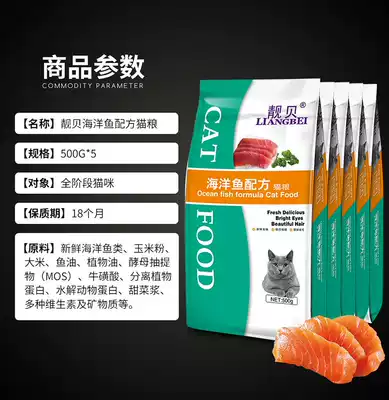 Liangbei Cat food 2 5kg500g small package ocean fish-flavored cat staple food 5 kg packed into cat kittens universal type