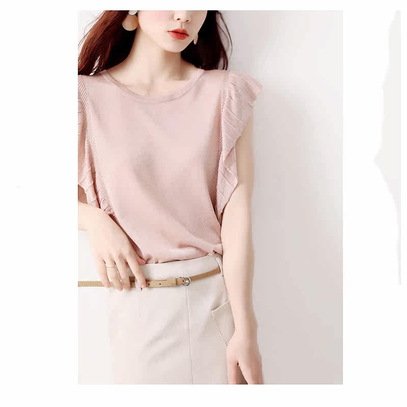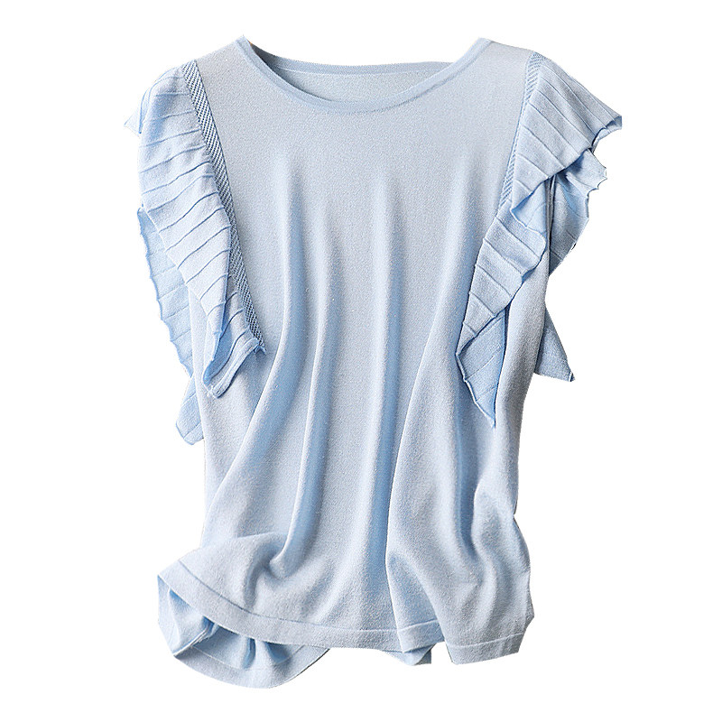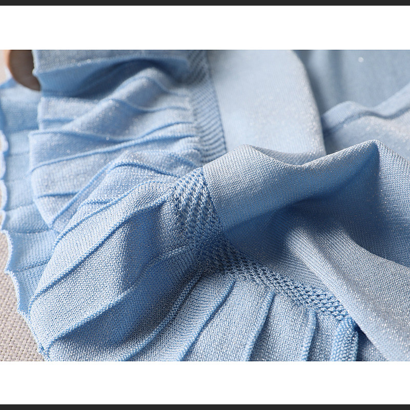 Day Ensemble Women's Dress Summer New Elegant And Slim Lotus Leaf Side Cuff for gold silver wire Insert Shiny Jersey Blouse