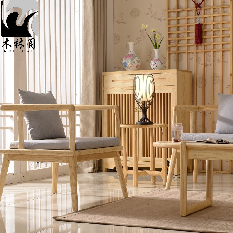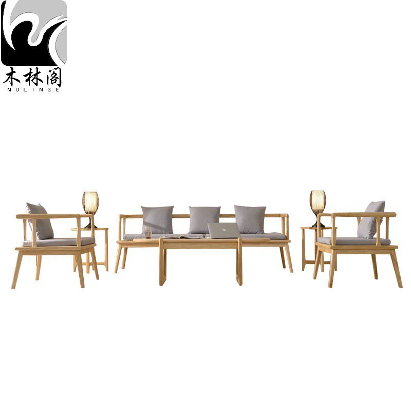 New Chinese style solid wood sofa combination Modern small apartment sofa meeting living room model room hotel villa sofa