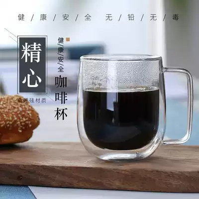 Household double layer with glass heat-resistant water cup office brewed tea cup with lid mug transparent coffee cup