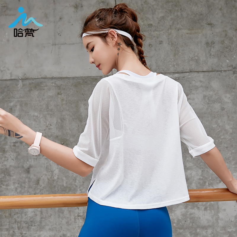 Summer new yoga sweatshirt T-shirt short sleeve lady gym fitness gym speed dry clothes loose hooded sweatshirt