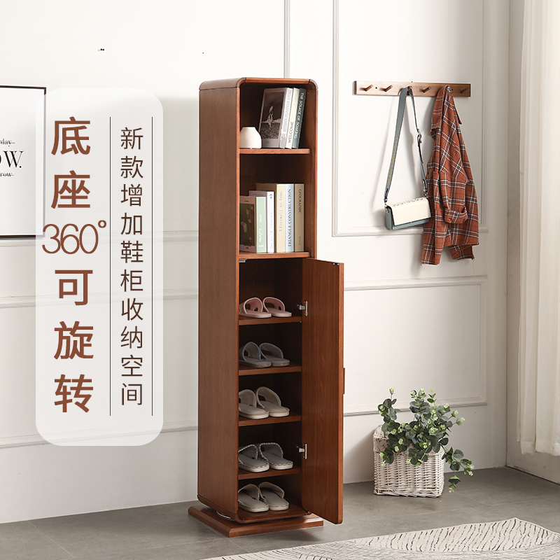 Full body Full body mirror Nordic storage Full body mirror Rotating solid wood color floor mirror Practical environmental protection bookcase Shoe cabinet