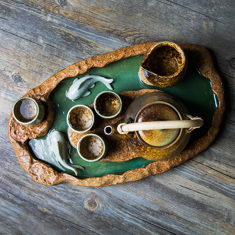 Creative Ceramic Tea Tray Handcrafted Coarse Pottery Deposit Water Storage Dry Foam Pan Nourishing Pot Trays Pot Chengkung fu Tea Tea Tray Tea Sea