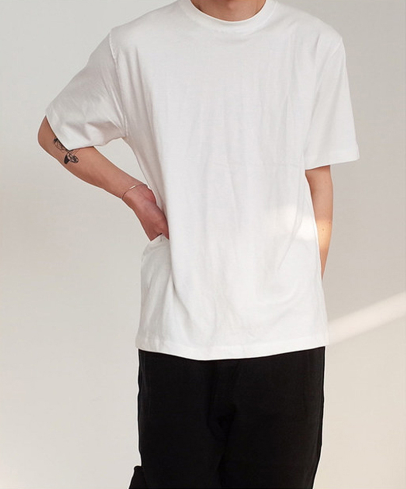 COLN homemade hand-made four seasons basic black and white Korean style loose version oversize small round neck short-sleeved T-shirt