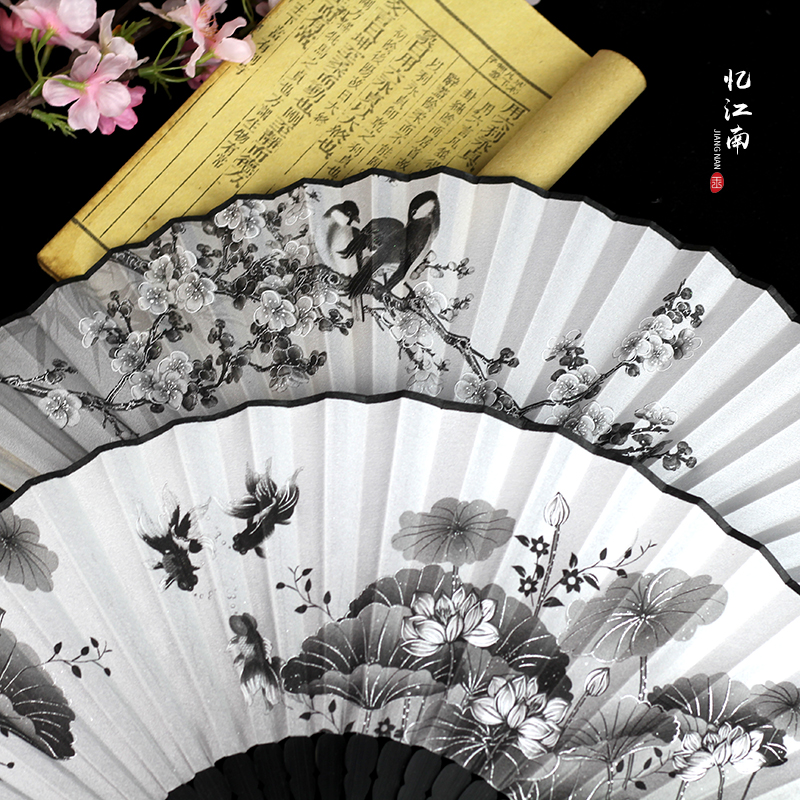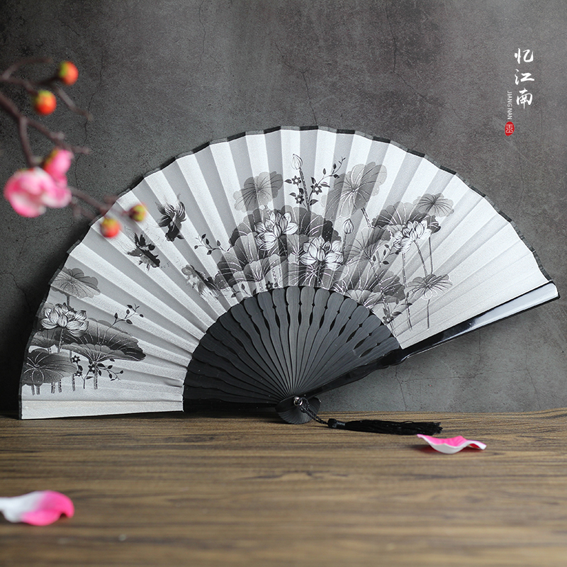 China Feng Shui Ink hand-painted Silk Men's Day style ancient style Ancient Style Crafts Gift Fan Summer Dance Performance Folding Fan