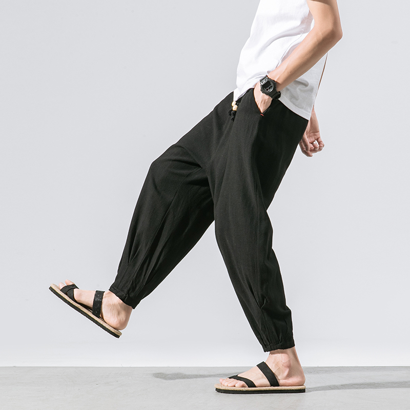 Chinese Renaissance Men's Pants Summer Thin Beam Softpants Lax Men Lin Less Less Pants Men