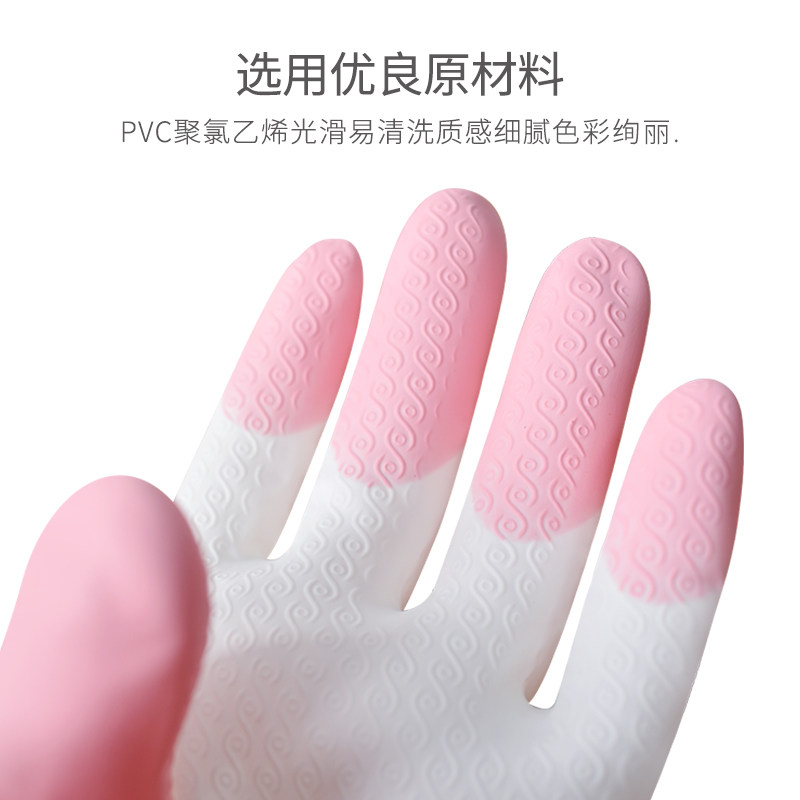Velvet house gloves women's kitchen cleaning washing dishes durable non-slip waterproof gloves plus velvet women warm winter