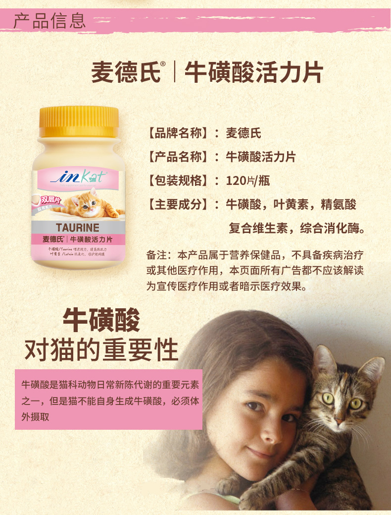 Mead's taurine vitality sheet improves kitty resistance to protect heart brain liver cat nutrition health products 120 tablets