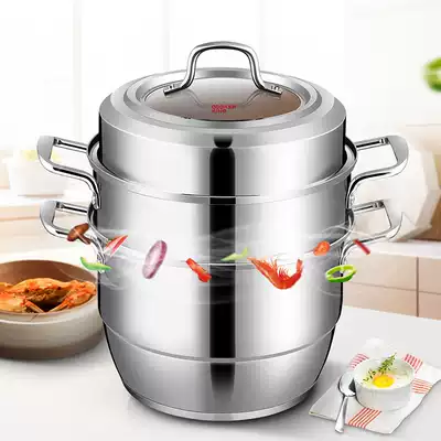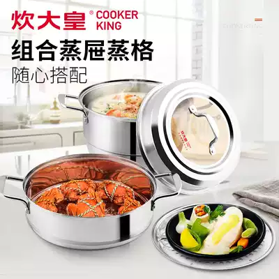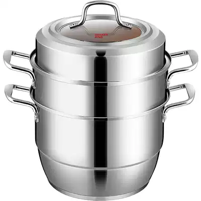 Cook Emperor steamer 304 stainless steel three-layer 28cm thickened bottom household steamed steamed bun pot induction cooker universal