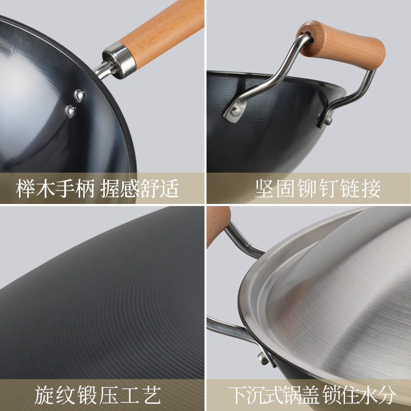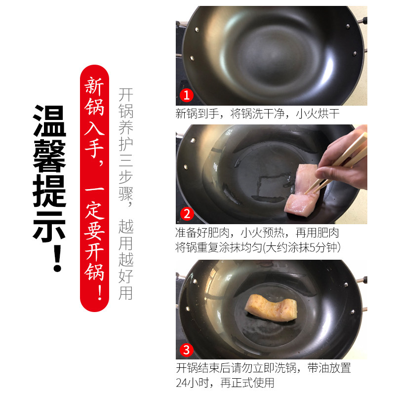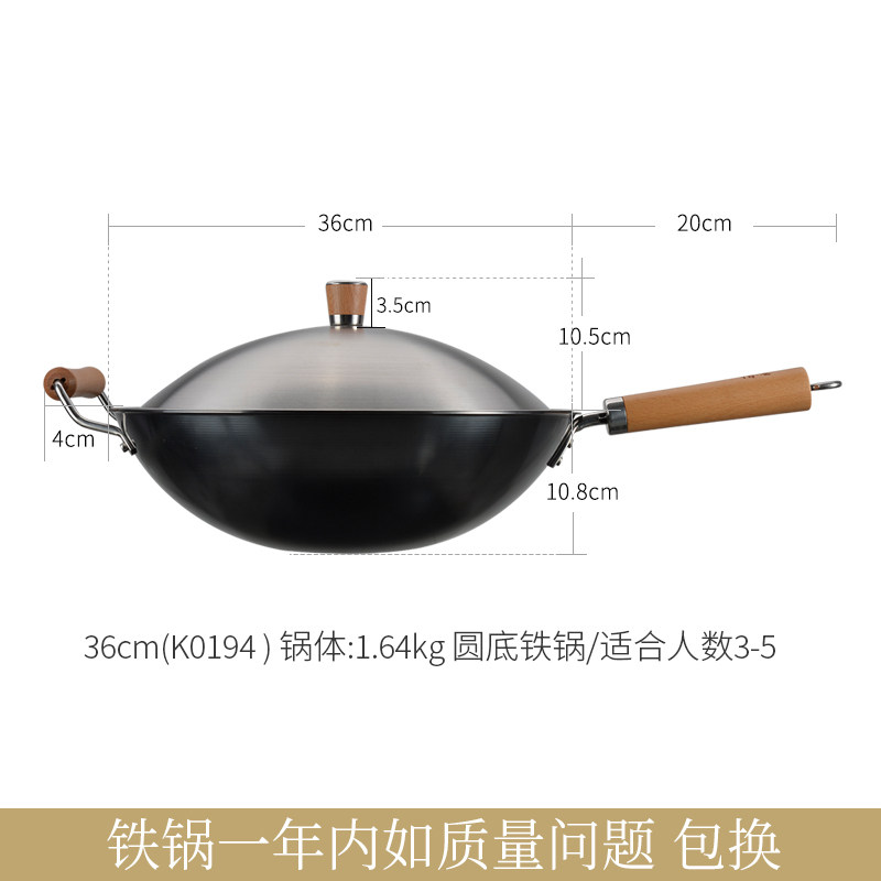 Meath Workhouse Fine Kettle Iron Pan Old Iron Pan Home Frying Pan Without Coating 36cm Round Bottom Large Frying Pan K0194