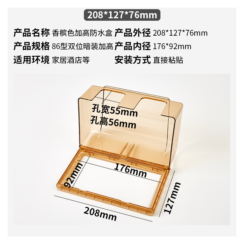 Two-position socket waterproof box two-position heightened and enlarged adhesive waterproof box water heater toilet socket waterproof cover