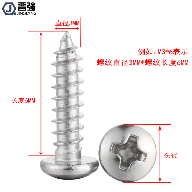 304 stainless steel cross round head self-tapping screw cross groove disc head sharp tail wood tooth screw self-tapping nail M4 * 6-60