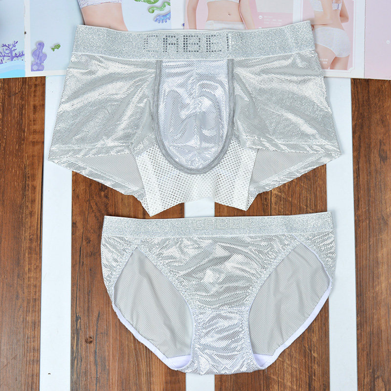 Super handsome caber caber lovers briefs ice silk creative sparkling male and female four-corner shorts sexy 980080