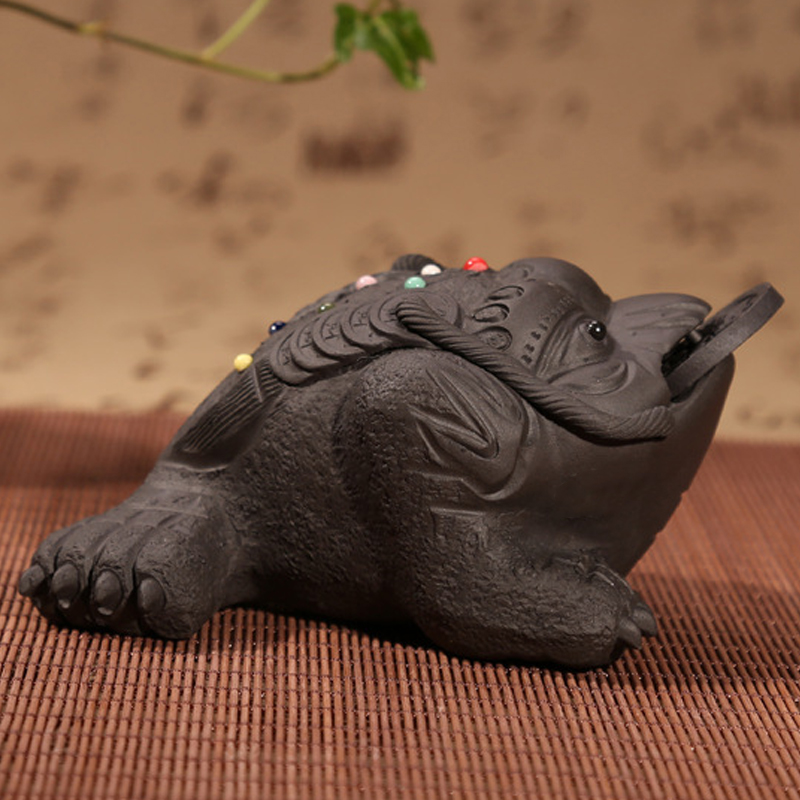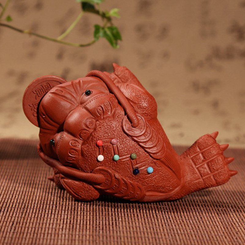 Three-legged golden toad lucky ornament golden silkworm purple sand can raise small tea pet frog ceramic toad kung fu tea set decoration