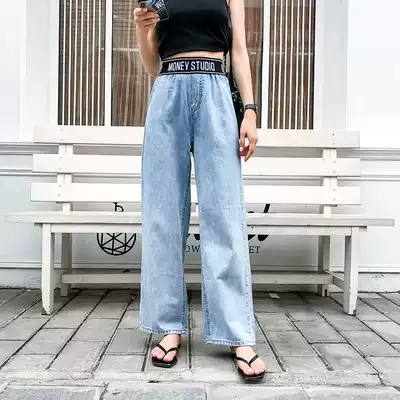 Summer thin elastic waist wide leg jeans women high waist drop loose Hyuna drag floor pants straight long pants tide