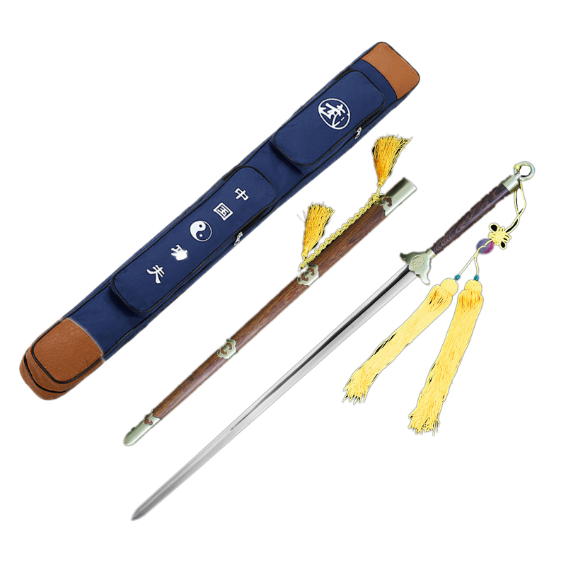 Unbladed Wudang Copper Ring Tai Chi Sword Men's and Women's Morning Exercise Performance Two-handed Sword Chicken Wing Wooden Sword Set Semi-hard Sword Stainless Steel