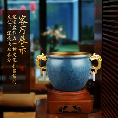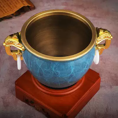 Forbidden City cylinder color copper cornucopia yellow model (CH) CH large fortune treasure cornucopia cornucopia with word ice crack Blue (green ancient bronze dragon ears) 15 5*22 5*19 CH large move