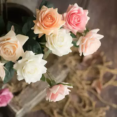 Hand feeling moisturizing single simulation rose bouquet fake flower rose living room table ornaments flower arrangement dry flower arrangement