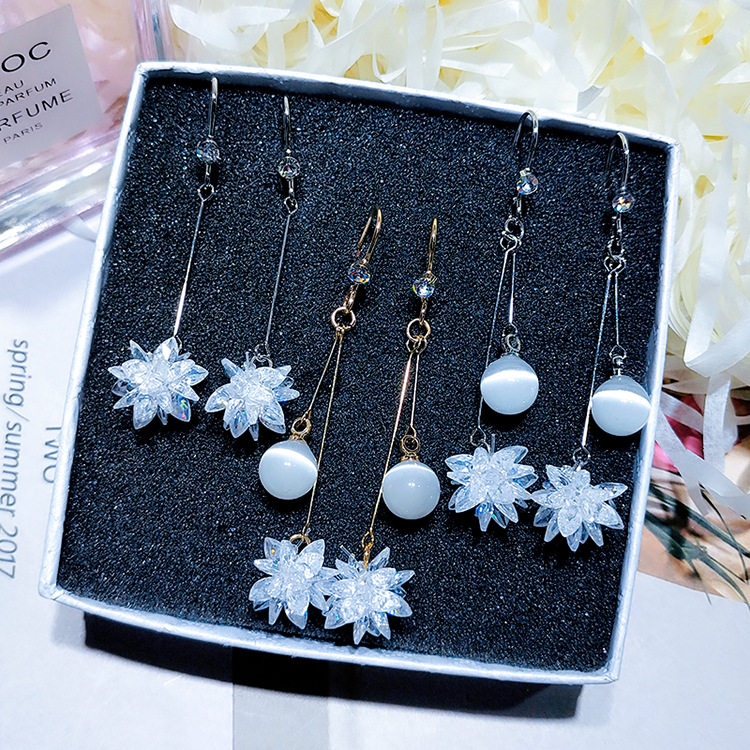 YJ Korean style Dongdaemun spring new product crystal flower lady simple ice flower earrings earrings all-match personality earrings