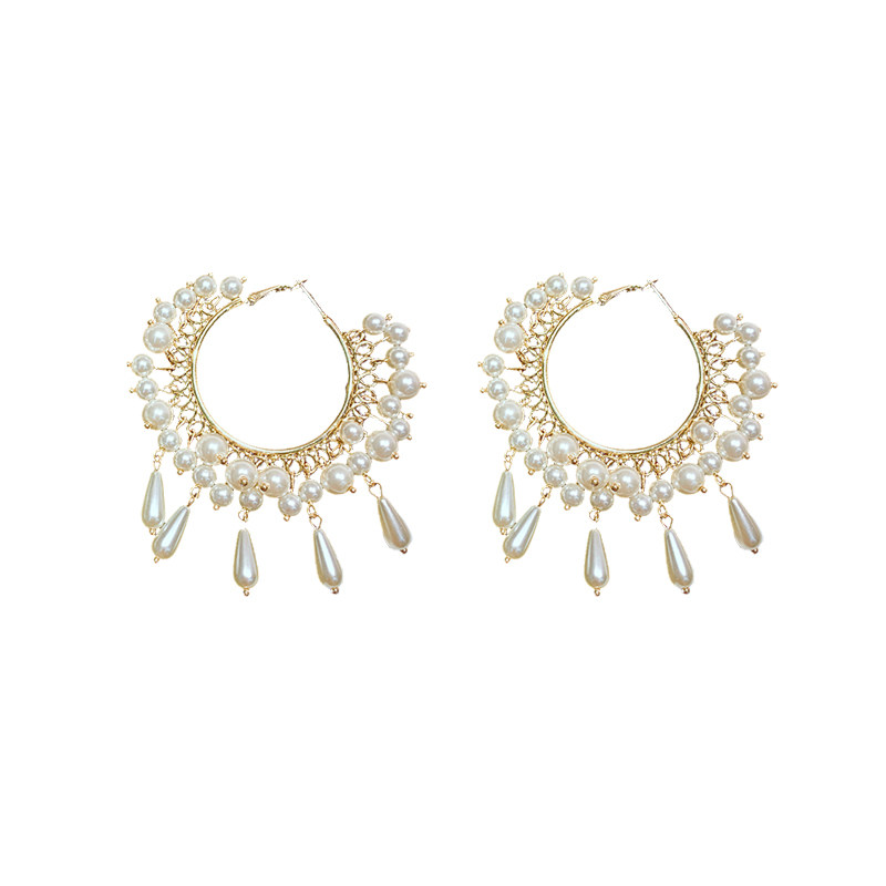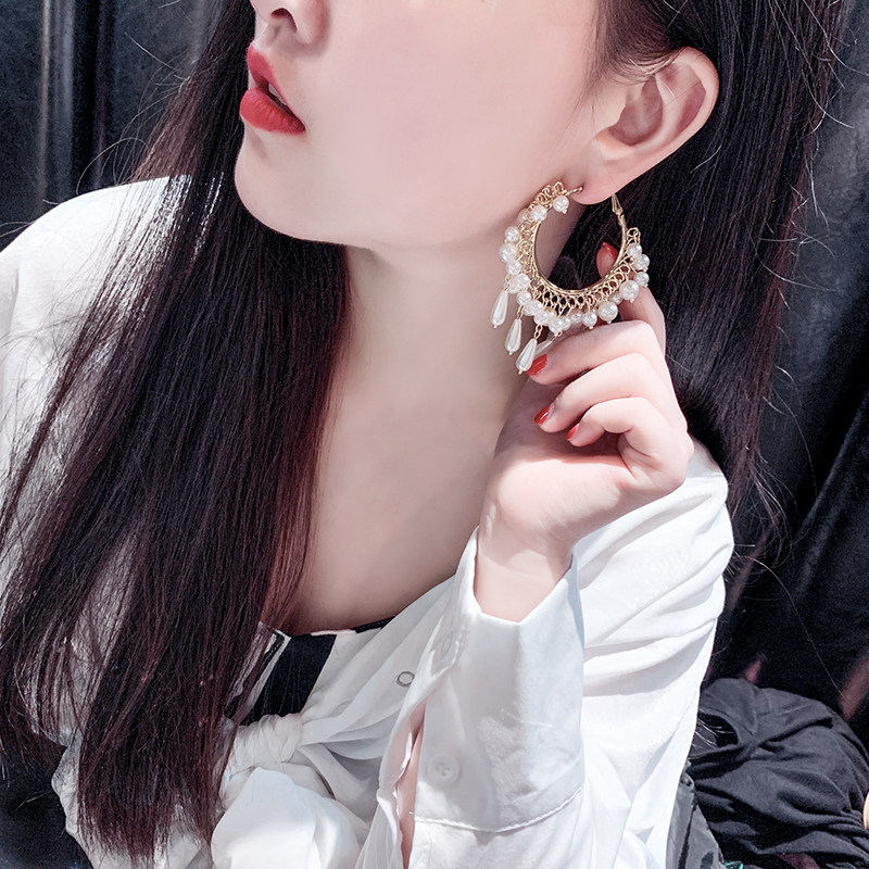 YJ Europe and the United States new personality exaggerated long version of temperament pearl earrings fashion very fairy retro thin earrings female