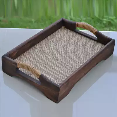 Thai straw pallet Retro creative wooden dry tea tray Teacup Club home room tea room coffee table tray