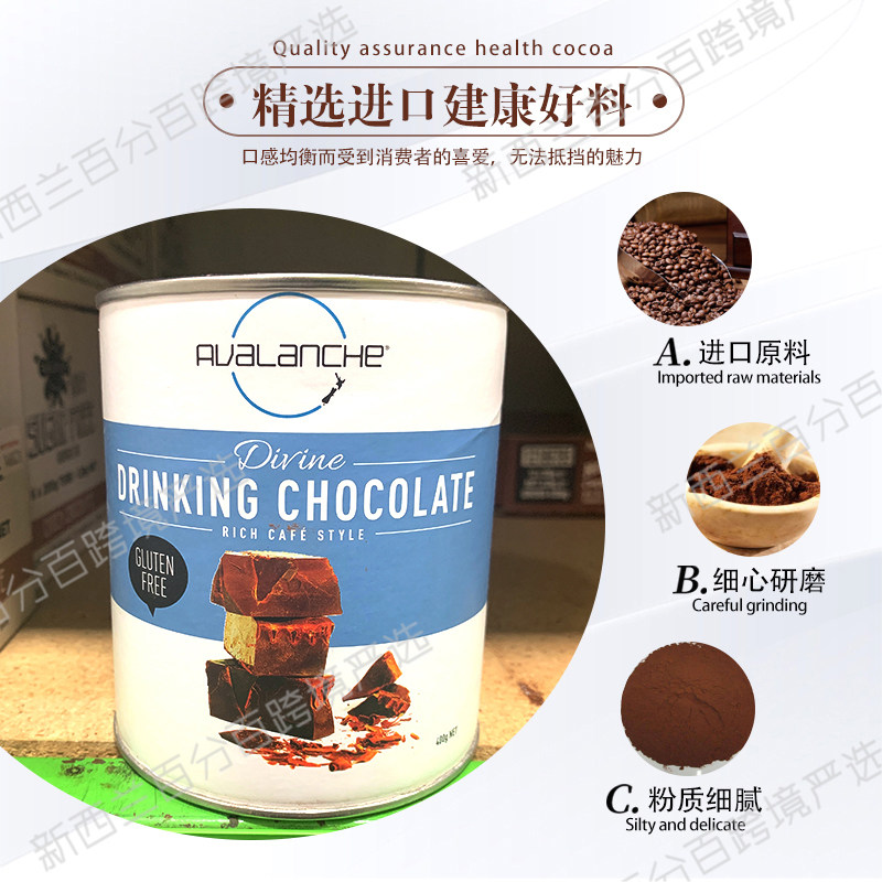 New Zealand Avalanche Chocolate Powder Snacks Children Hot Cocoa Drinks Gluten Free 400g