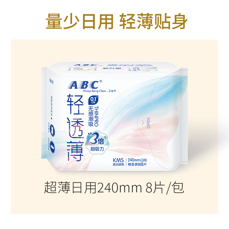 ABC Sanitary Napkins Women Daily Pure Cotton Soft Super Thin Light Overdraft Mint Cool 8 slices 240mm Composition 10 Pack K13 -Taobao