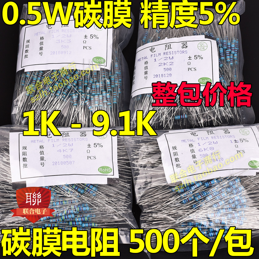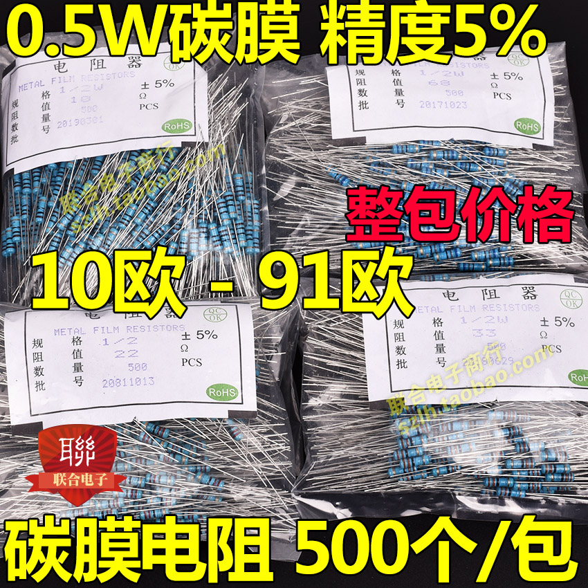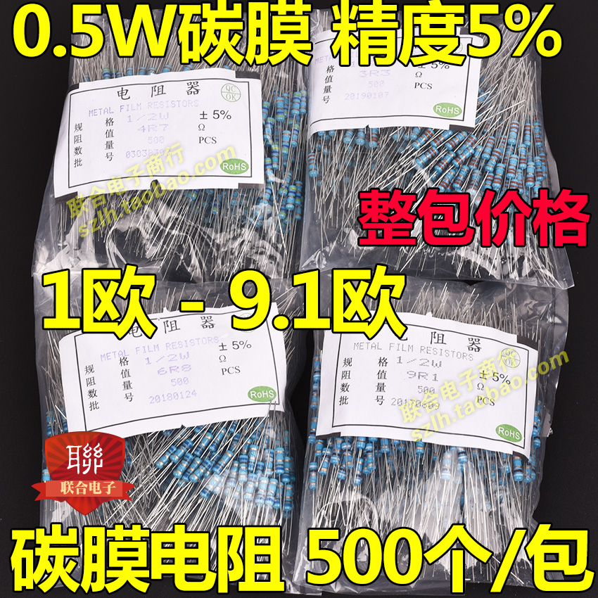0 5W carbon film resistance 100R 150R 220R 330R 470R 510R 680R 750 910 Euro package